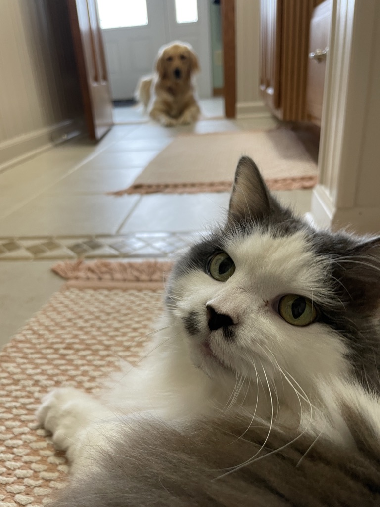 As for the furballs, Maeby has, as expected, continued her reign as queen of the couch. She remains the world’s laziest cat and continues to rotate naps in her favorite spots including the couch, bathroom rug, and tucked in between our pillows on the bed. Dolly and Maeby continue to balance their tumultuous relationship, but have formed an alliance against a new enemy: the litter robot.